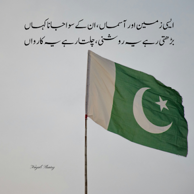 ایسی زمین اور آسماں ، ان کے سوا جانا کہاں بڑھتی رہے یہ روشنی ، چلتا رہے یہ کارواں دل دل پاکستان ، جاں جاں پاکستان دل دل پاکستان ، جاں جاں پاکستان دل دل سے ملتے ہیں تو پیار کا چہرہ بنتا ہے ، چہرہ بنتا ہے پھول اک لڑی میں پروئیں تو